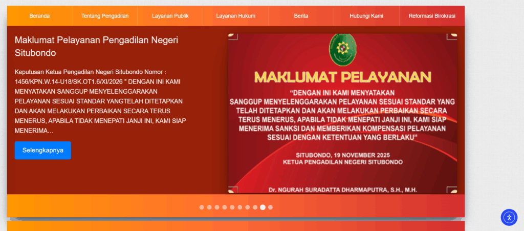 Pada beranda website Kantor Pengadilan Negeri Situbondo Terdapat Icon berwarna biru berlambang