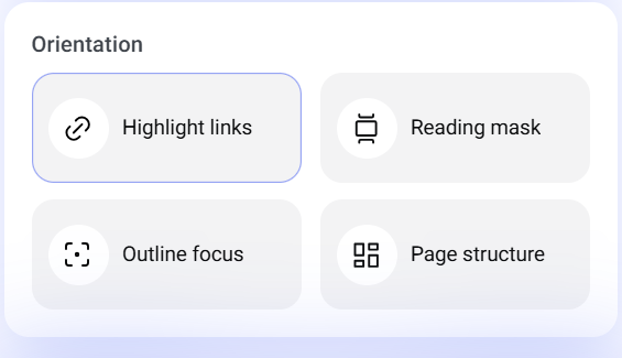 - Fungsi ini akan menyoroti semua tautan (links) di layar dengan warna atau batas yang jelas.
