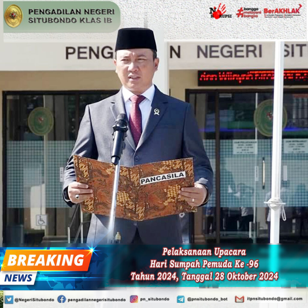 Senin 28 Oktober 2024, Pengadilan Negeri Situbondo melaksanakan upacara memperingati Hari Sumpah Pemuda ke 96 tahun 2024.
