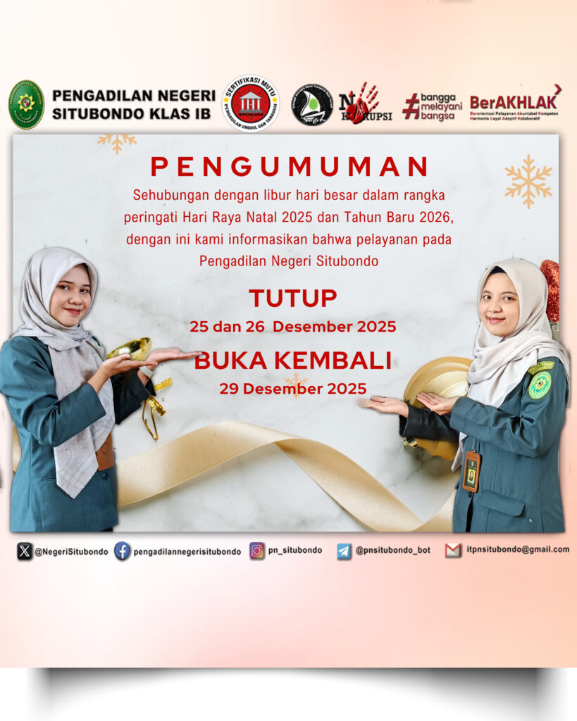 Penetapan Penyedia POS BANTUAN HUKUM (POSBAKUM) Pengadilan Negeri Situbondo TA 2026 →