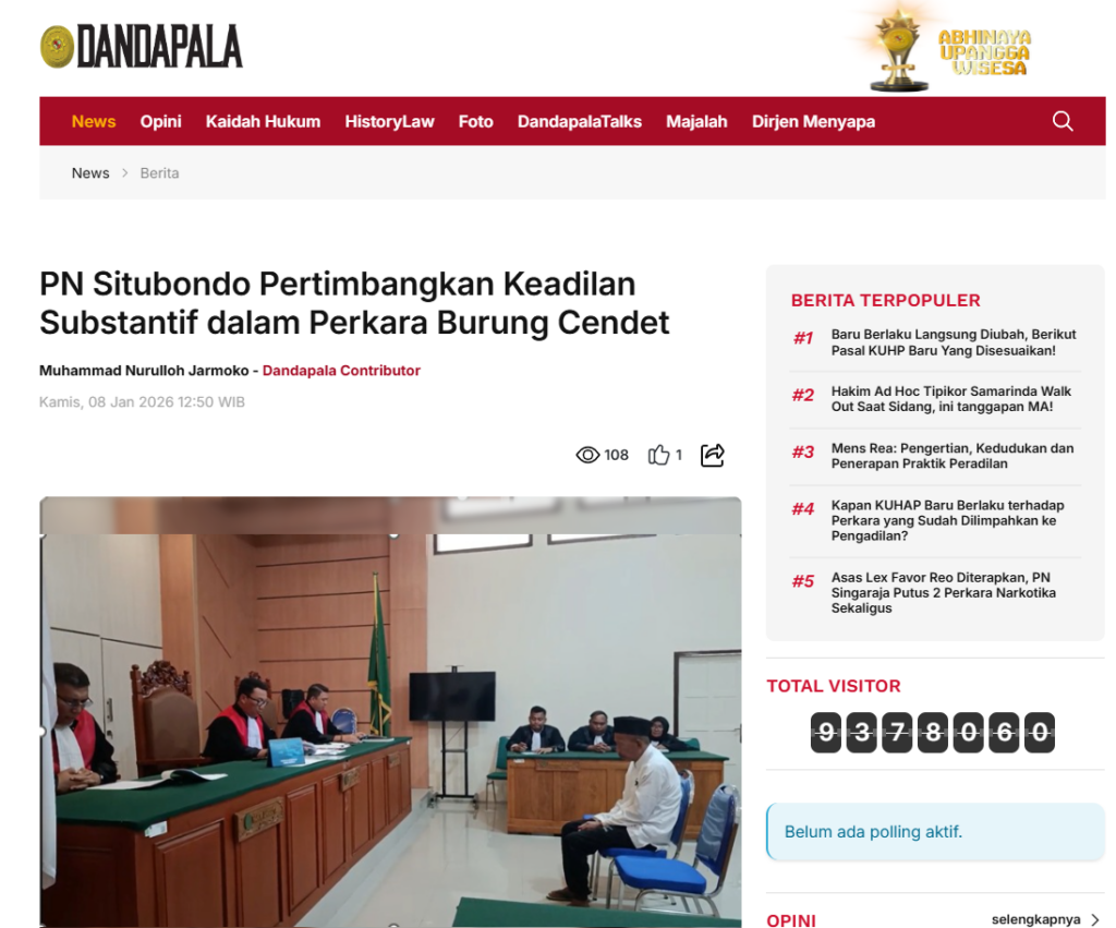 Dandapala : PN Situbondo Pertimbangkan Keadilan Substantif dalam Perkara Burung Cendet
