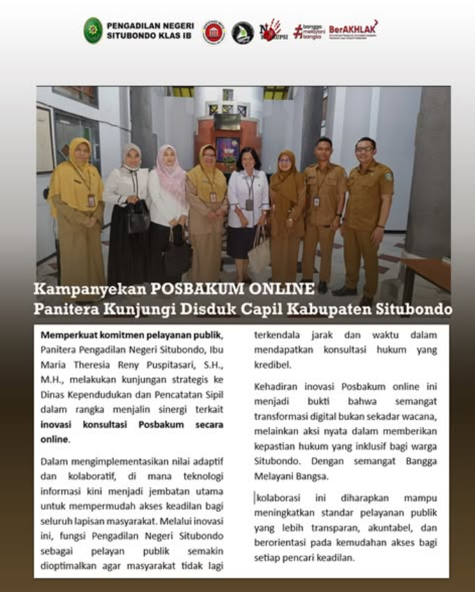 Melalui Posbakum Online, Pengadilan Negeri Situbondo mengirimkan pesan kuat: bahwa keadilan tidak boleh eksklusif, ia harus hadir dan dapat dijangkau oleh siapa saja, kapan saja, dan di mana saja.