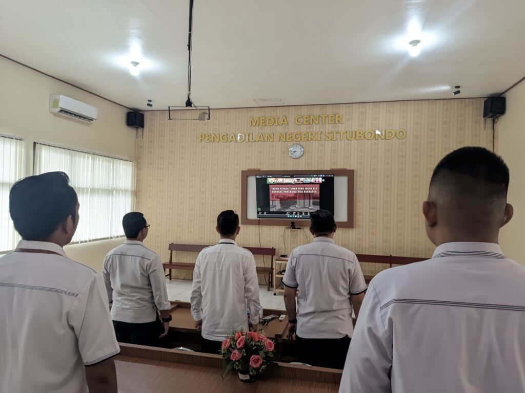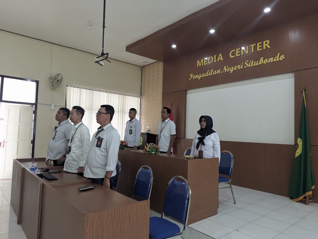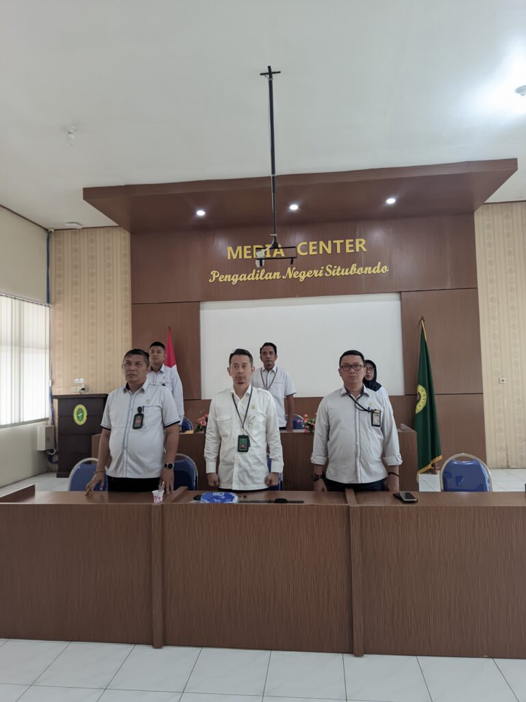 Dr. Ngurah Suradatta Dharmaputra, S.H,M.H Ketua Pengadilan Negeri Situbondo dan Bapak Wakil Ketua Pengadilan Negeri Situbondo Bapak Haries Suharman Lubis, S.H,M.H beserta jajaran Hakim, Para Panitera Muda dan Staff Pidana ikuti acara PERISAI Badilum Episode ke 15 pada Senin, 27 April 2026.