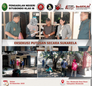 SelengkapnyaKamis, 4 Desember 2025, telah dilaksanakan pelaksanaan eksekusi berdasarkan penetapan Ketua Pengadilan Ngeri Situbondo Nomor. 8/pen.Pdt.Eks/2024/PN.Si...